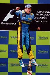 Watched by King Juan Carlos, and roared on by ecstatic compatriots decked out in Renault’s blue and yellow colours, the triumphant 24-year-old ended Michael Schumacher’s hopes of a third win in a row for Ferrari. The German, six-time winner at the Circuit de Catalunya and Alonso’s closest rival in the championship after winning his home Grand Prix at the Nuerburgring last weekend, finished second 18.5 seconds adrift.