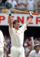 | Adam Gilchrist after reaching his century at the Gabba on Saturday (AP) |