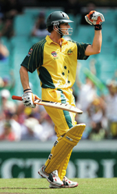 There were some brief signs of panic among the Australian batsmen when Ponting (32), Hayden (43), Damien Martyn (five), Andrew Symonds (0) and Michael Clarke (6) fell in rapid succession, before Lehmann and Hogg steadied the innings.