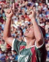 | Jose Ramirez Barreto celebrates after scoring one of his goals at the Salt Lake Stadium on Wednesday. A Telegraph picture |