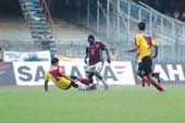 | Ndem Guy Herve being challenged by M. Suresh at the Salt Lake Stadium on Tuesday. A Telegraph picture |