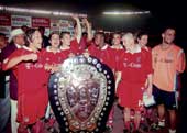 | Bayern Munich with the IFA Shield after they beat Ever-Ready in the final at the Salt Lake Stadium on Sunday. Picture by Gautam Bose |