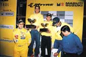 | The top two, Neil Behal and Viral Mehta with their trophies Sunday. Looking on extreme left is Karun Chandhok |