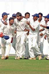 A desperate attempt to reach for a ball way outside the off-stump earned Gujarat Laxmi’s prize-scalp. Getting out on 93, Laxmi who could well have been Bengal’s hero, exposed the fragile Bengal tail. And Parthiv’s men did nothing wrong in winding it all up to take a crucial three-run first innings lead, and a possible two points.