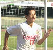 | Bhaichung Bhutia after scoring East Bengal’s first goal at Salt Lake Stadium on Thursday. Picture by Santosh Ghosh |