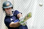 | Ricky Ponting at nets in Kuala Lumpur on Saturday, the eve of the tri-series final against the West Indies. (AP) |