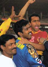 The East Bengal bench rushed in to hold the diminutive midfielder high in the sky and it was followed by the holding of the TVS Fiero IFA Shield aloft — 27 times in all. In an immediate jump-cut, Subhas Bhowmick was noticed quietly going down the tunnel to the dressing room, leaving the joy and excitement behind him. It was also a historic moment for him, winning four titles in a row for the first time in his coaching career.