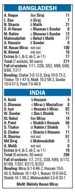 But then, as he did in the first ODI, Mehidy Hasan Miraz hurt India once again. And this time he hit a sensational 83-ball 100 not out, getting solid assistance from the experienced Mahmudullah (77). The pair forged together 148 runs for the seventh wicket.