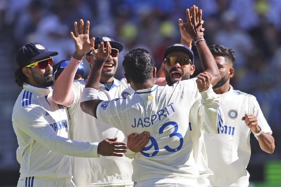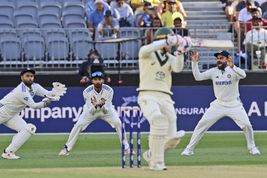 Once Bumrah set the tone, debutant Harshit, with a bustling action, got one that pitched on middle stump, drawing Travis Head (11) forward before it deviated to dislodge the off-bail.