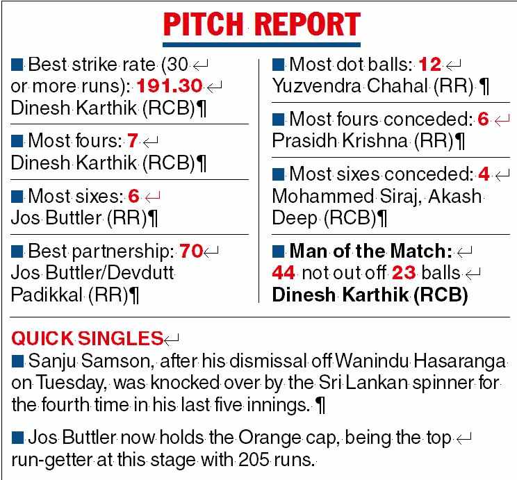 Dinesh Karthik has been playing the role of a finisher to perfection in the RCB line-up. On Tuesday, he remained unbeaten on 44 off 23 balls to pull off a sensational four-wicket victory against Rajasthan Royals.