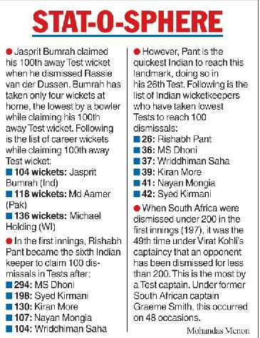 Soon after, in the day’s final over, Bumrah unleashed a superb yorker to knock over night-watchman Keshav Maharaj and keep India very well placed to wrap up the Test. The ability to surprise batsmen with a yorker is certainly one big advantage of Bumrah, who till then was negotiated reasonably well by Maharaj.