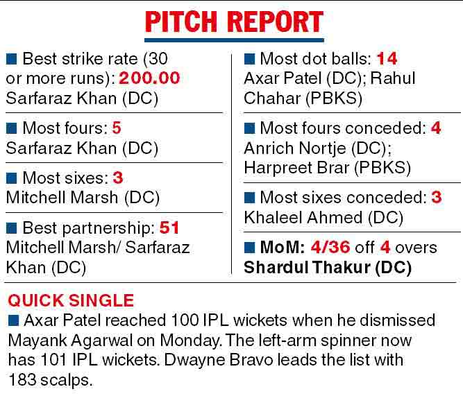 Earlier, it was purely due to Marsh that Delhi could get near 160. The recklessnessof David Warner, captain Rishabh Pant and Rovman Powell against Livingstone had undone the good work of Sarfaraz Khan (32), who came in for KS Bharat, and Lalit Yadav (24). Both assisted Marsh well during the respective second and third-wicket stands.