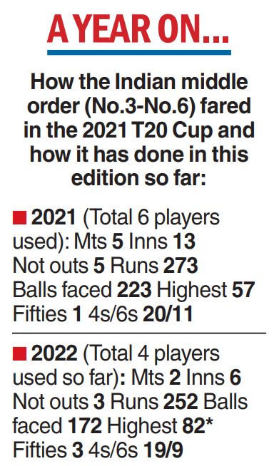 From being a concern to reinvigorating itself as the backbone of the side. That’s the kind of turnaround India’s middle order has made since the team’s debacle in the 2021 T20 World Cup.