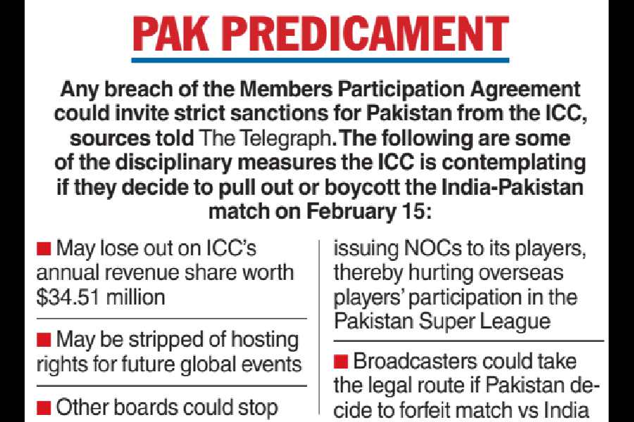 The fear of likely sanctions by the International Cricket Council could force the Pakistan Cricket Board to abandon their perceived threat of boycotting the T20 World Cup or forfeiting their match against India in Colombo on February 15.