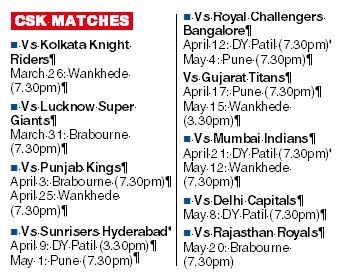 l Chennai Super Kings vs Kolkata Knight Riders, Wankhede (7.30pm)