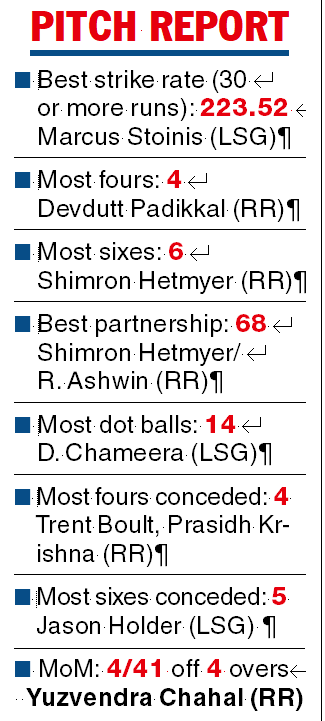 In the first half of the game, Shimron Hetmyer was given a reprieve early and he then made Lucknow pay for it. The West Indies left-handed batsman, dropped on 14, hit an unbeaten 36-ball 59 that propelled Rajasthan Royals to a competitive total of 165 for 6.