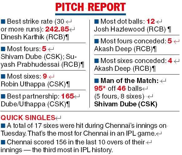 “I’m more focused this time and focusing on the basics. I spoke to many seniors in the team, while Mahibhai also helped me to improve my game,” Dube, adjudged Man of the Match for his unbeaten 95, said at the post-match presentation after CSK’s 23-run win over Royal Challengers Bangalore on Tuesday.