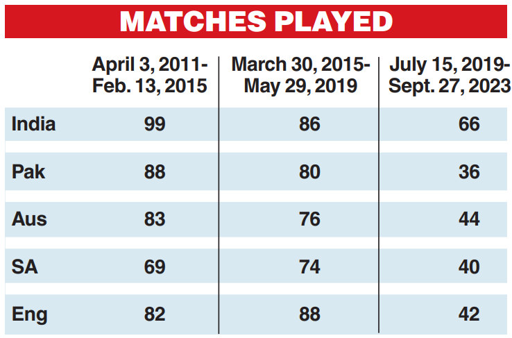 But that to some extent is also unavoidable with the teams playing lesser number of bilateral ODI series nowadays. The tri-nation or quadrangular meets are also a thing of the past. The bilateral engagements are either