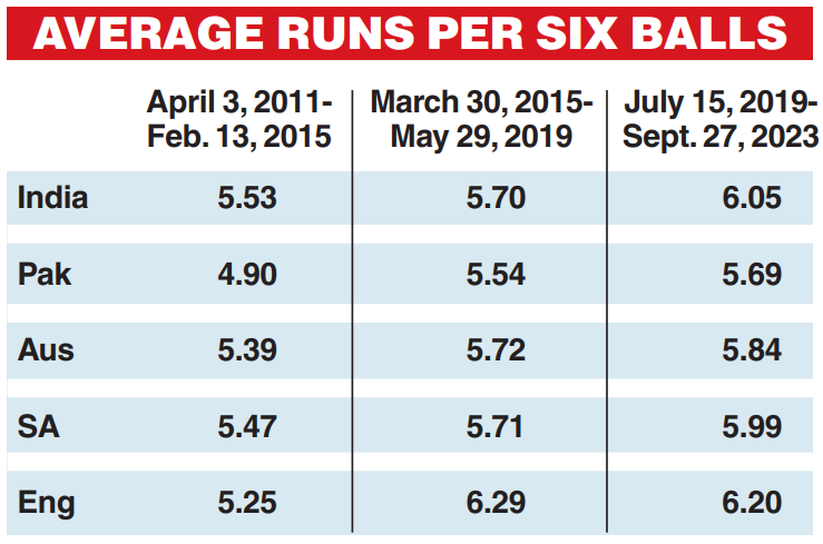 One isn’t saying that the upcoming World Cup will see a flurry of 300-plus scores, because the varying playing conditions in a vast country like India will surely come into play when the teams devise their strategies. But whatever the overhead and under-the-feet situation, one can rest assured that the teams will seldom go into a shell. That’s because, thanks to T20s, the mindset of playing an ODI has changed.