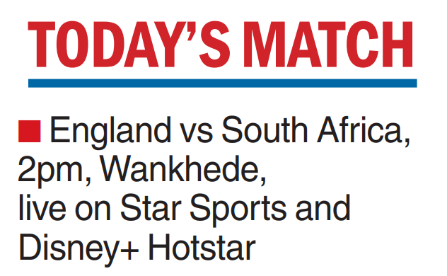 The defending champions fell face-first in their last game against Afghanistan. And it was not their first loss of the tournament, having lost the opener versus New Zealand. England take on South Africa at the Wankhede in Mumbai.