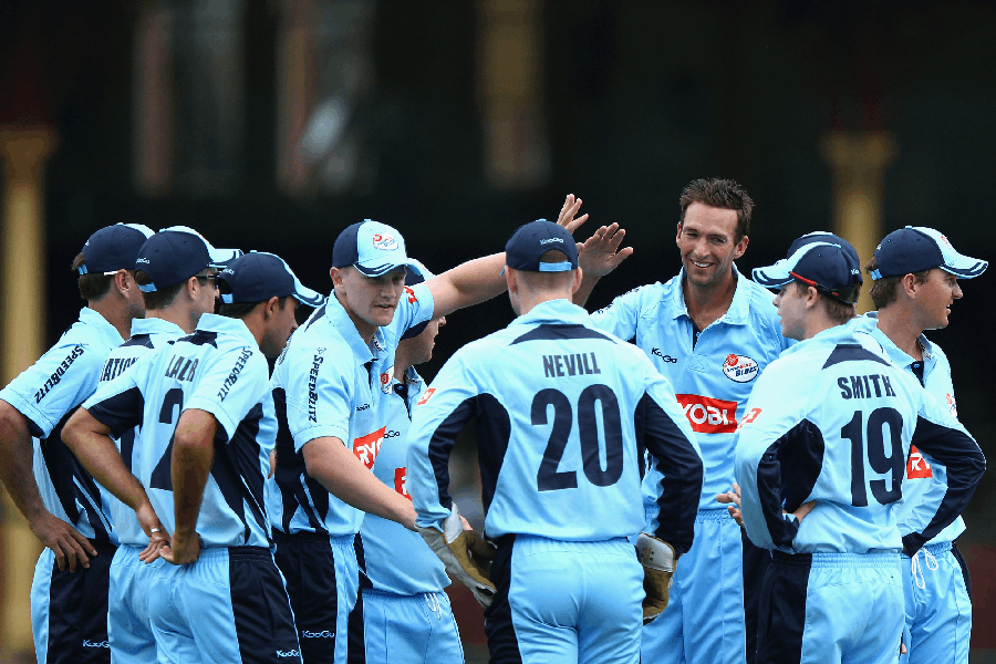 New South Wales Blues celebrate a wicket at the 2011 Ryobi One Day Cup (Getty)