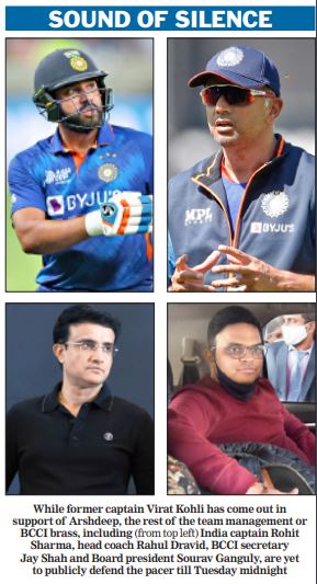 But Arshdeep has faced brutal social media trolling with some users hacking into and editing his Wikipedia page, adding the objectionable term “Khalistani” by his name. Surprisingly, neither the India team management, including captain Rohit Sharma and head coach Rahul Dravid, nor anyone from the Board of Control for Cricket in India had publicly denounced these attacks and stood up for Arshdeep till late on Monday.