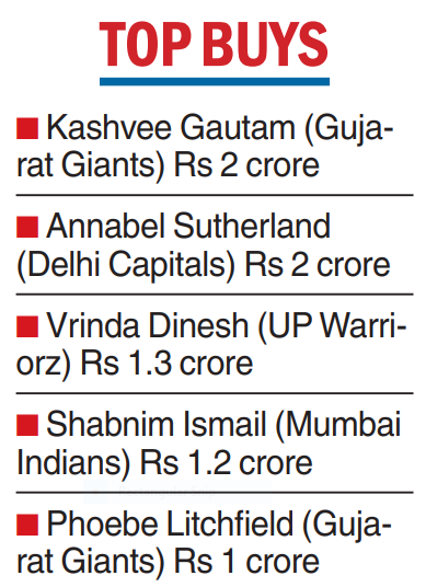 Vrinda Dinesh (Rs 1.3 crore), Shabnim Ismail (Rs 1.2 crore) and Phoebe Litchfield (Rs 1 crore) were the others with an eight-digit pay-packet.