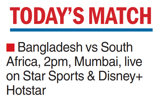 For Bangladesh, captain Shakib-Al Hasan remains a concern as he did not not bowl in their practice session here on Sunday. The all-rounder suffered a quad injury against New Zealand in Chennai and has not been in the playing XI ever since with Najmul Hossain Shanto leading the side.