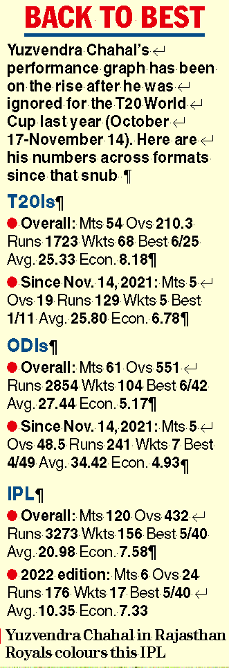 “His ouster from the T20 World Cup was indeed quite surprising. But when you get that kind of a jolt, it can also help you to try and do things even better. That appears to be the case with Chahal as his bowling is much more disciplined than what it used to be.”