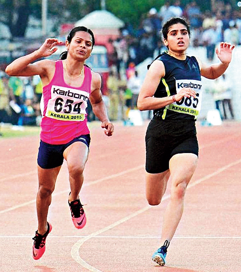 Thiruvananthapuram: Controversial teen sprinter Dutee Chand clinched the women’s 100m gold with a new meet record, as athletes continued to raise the bar in track and fields of the 35th National Games, here on Wednesday.