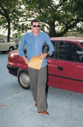 | Douglas da Silva arrives at the East Bengal tent on Tuesday to meet the club secretary. Picture by Santosh Ghosh |
