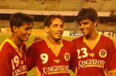 | Syed Rahim Nabi, Alvito D’Cunha and Arun Malhotra (left to right), who scored for East Bengal against Mohammedan Sporting on Saturday |