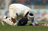 Farhat reached his maiden Test century when he played Adams behind square on the leg side, having struck 14 fours in 179 balls.