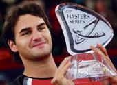 | Switzerland’s Roger Federer with the trophy after his victory over Frenchman Richard Gasquet at the Hamburg Masters on Sunday. Federer won 6-3, 7-5, 7-6. (Reuters) |