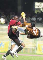 Ghanaian Felix Aboagye and Raphael Patron Akakpo, from Togo, worked up a dream combination to punish Mohammedan Sporting on a hot afternoon at the Salt Lake Stadium. Felix fired a hattrick — the second in this edition of the NFL after Ashim Biswas — after Patron had drawn first blood.