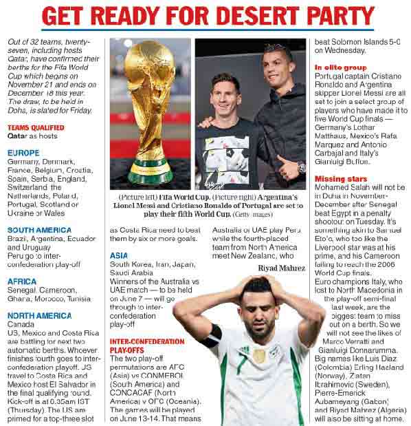 Peru will meet either the United Arab Emirates or Australia, who play the Asian confederation playoff in Doha on June 7, for a place in Qatar. The inter-confederation playoff will take place in Doha on June 13 or 14.