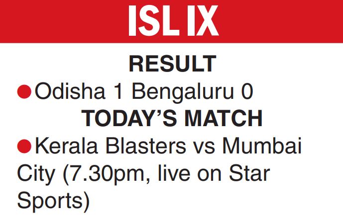 Odisha FC picked up their second win in two games at home, beating Bengaluru FC 1-0 to move to the top of the table with nine points.