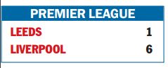 Liverpool banished their away day blues as Diogo Jota and Mohamed Salah grabbed two goals each in an emphatic 6-1 victory at Leeds United on Monday, a record home Premier League loss at Elland Road for the struggling Yorkshire club.