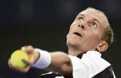 | Nikolay Davydenko serves to Mariano Puerta of Argentina in the ATP Masters Cup in Shanghai on Friday. (Reuters) |