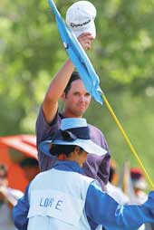 | Edward Loar of the US doffs his cap after winning the 37th Thailand Open in Bangkok Sunday. (AFP) |