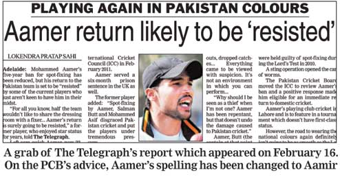 On February 16, The Telegraph in a report headlined 'Aamer return likely to be resisted', had quoted a former player as saying: "For all you know, half the team wouldn't like to share the dressing room with a fixer..."