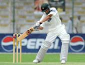 | Yasir Hameed cuts one en rout to his 170 against Bangladesh in Karachi on Thursday. (Reuters) |