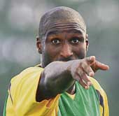 | Sol Campbell makes a point during Arsenal’s practice session on Tuesday |