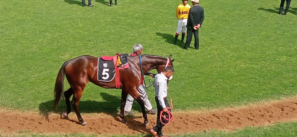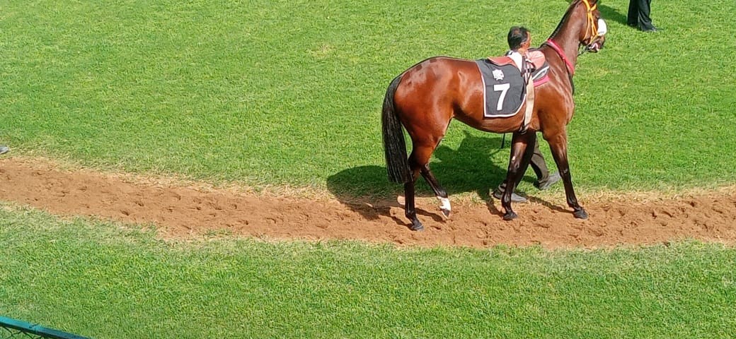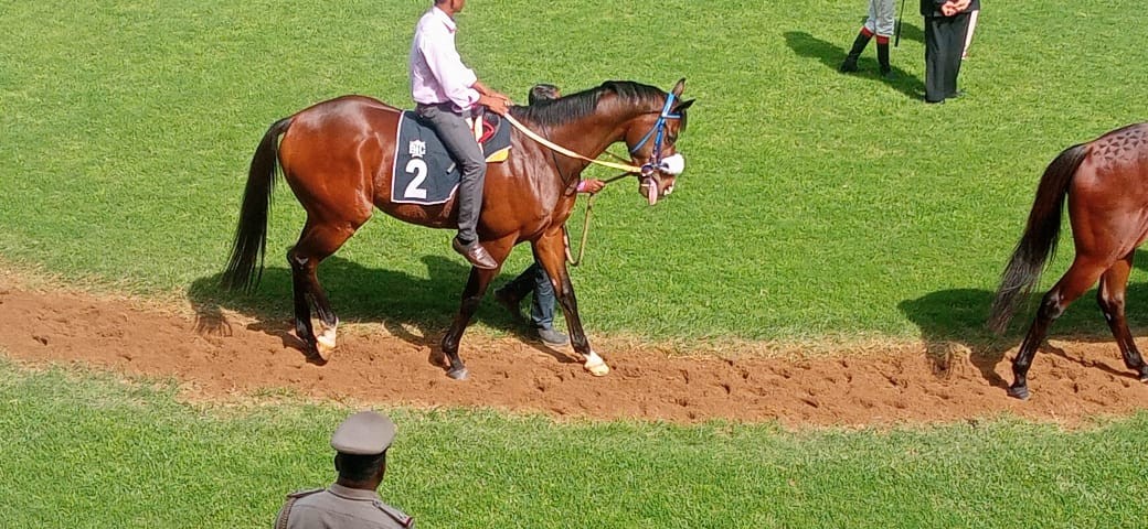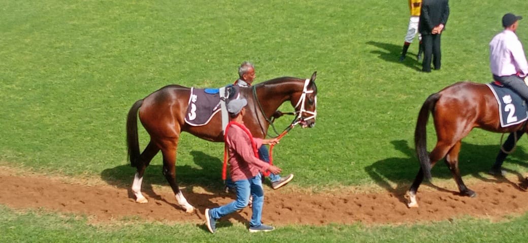 NEVER GIVE IN (Saddam Hussain), ARALINA (Antony Raj), DENSETSU (Soufyane J Moulin), VAL D’ARAN (P Vikram) and SLAINTE (Ritesh Gochhi) in 1-17s; from 1,200m to 600m 38s. All jumped out well. They were almost level.