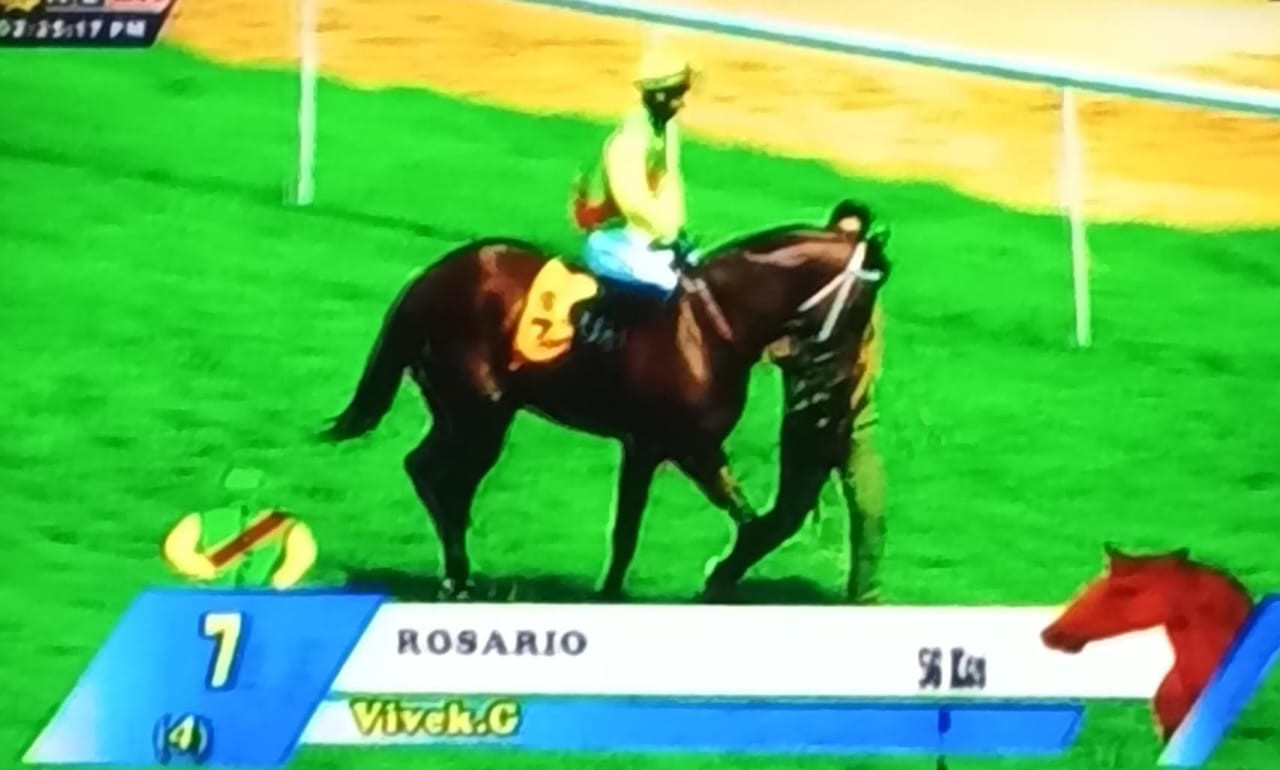 ROSARIO (G Vivek) and MATISSE (K Nazil) in 1-39s; (1,200m) 1-25s; (1,000m) 1-9s; (800m) 55s; (600m) 42s. The former was 6 ls better.