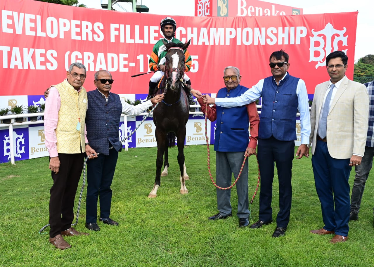 JAISALMER (Nirmal Jodha), SOVEREIGN KING (C S Jodha) and RAFAEL (G Santosh) in 1-10s; (800m) 54s; (600m) 41s. All jumped out well. Each was separated by a distance.