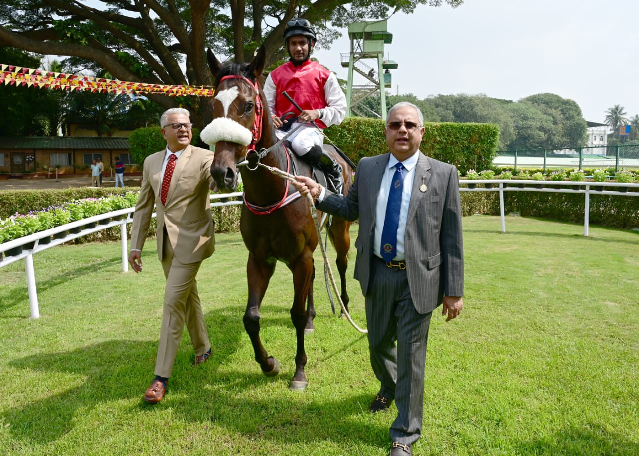 REGAL REALITY (Akshay Kumar), EL ASESINO (Shreyas Singh), DON CARLOS (Trevor Patel) and THE INTRUDER (J Chinoy) in 1-15s; from 1,200m to 600m 37s. All jumped out well. They were separated by 2 ls , 2ls and a distance.