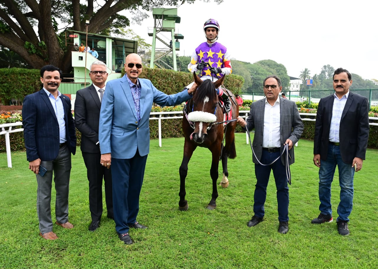 CORINTHIAN (Trevor Patel), STELLANTIS (R N Darshan), MYSTICAL AIR (Akshay Kumar), KRYSTALLOS (Shreyas Singh) and GLAZE (M Rajesh Kumar) in 1-29s; from 1,200m to 600m 50s. All jumped out well. They were separated by 2 ls, a length, 3 ls and 6 lengths.