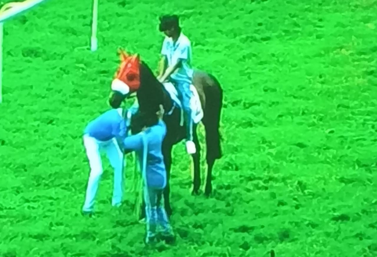 SPLENDOUR ON GRASS (NR Santosh Raj) and DIABLO (P Sai Kumar) in 1-14s; 800 59s; 600 43s. They were level. Both are looking fit.
