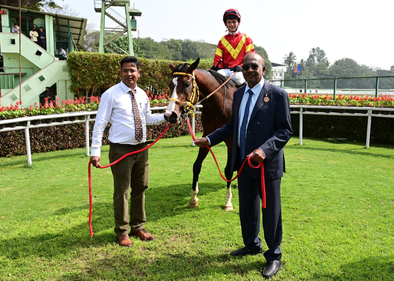 DESERT KINGDOM (Vinod Shinde) and AMAZING STRIDE (Md Akram) in 1-40s; (1,200m) 1-25s; (1,000m) 1-13s; (600m) 47s. The former was 6 ls better.